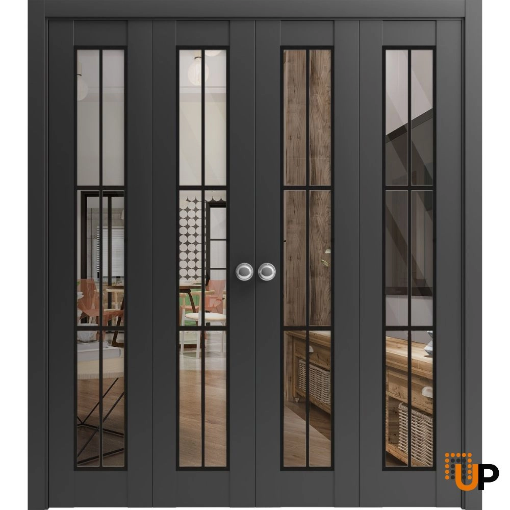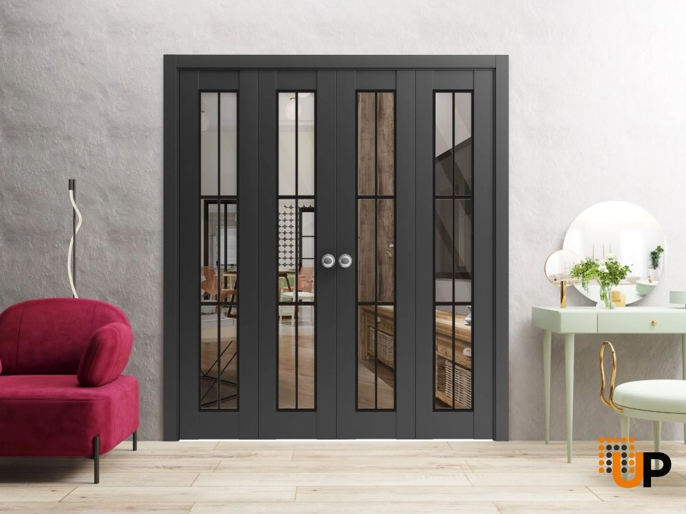 Our “Modern Double Bi-fold Doors” are designed to slide smoothly and effortlessly, providing easy access to your space. The bi-fold mechanism allows the doors to fold and stack neatly, taking up minimal space when opened, making them perfect for smaller rooms or apartments.